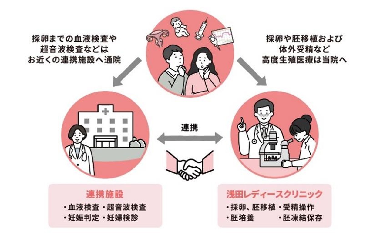 2023年9月、当院は東京にある不妊治療専門クリニック「浅田レディース品川クリニック」と提携し、福島にいながらでも、高度不妊治療体外受精・胚移植を受けられる体制を整えました。